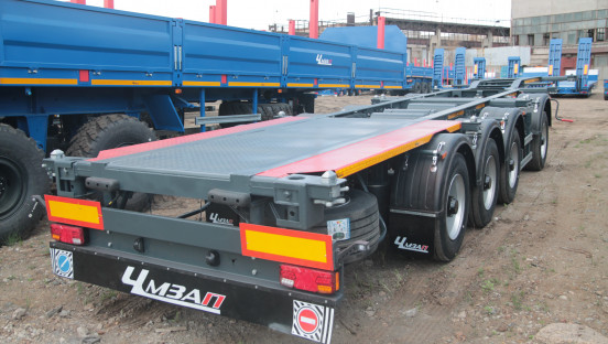- облегчённый контейнеровоз ЧМЗАП 99903-053-ПЛ из линейки магистральной техники для перевозки грузов до 41 тонны.