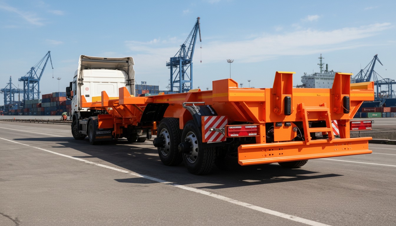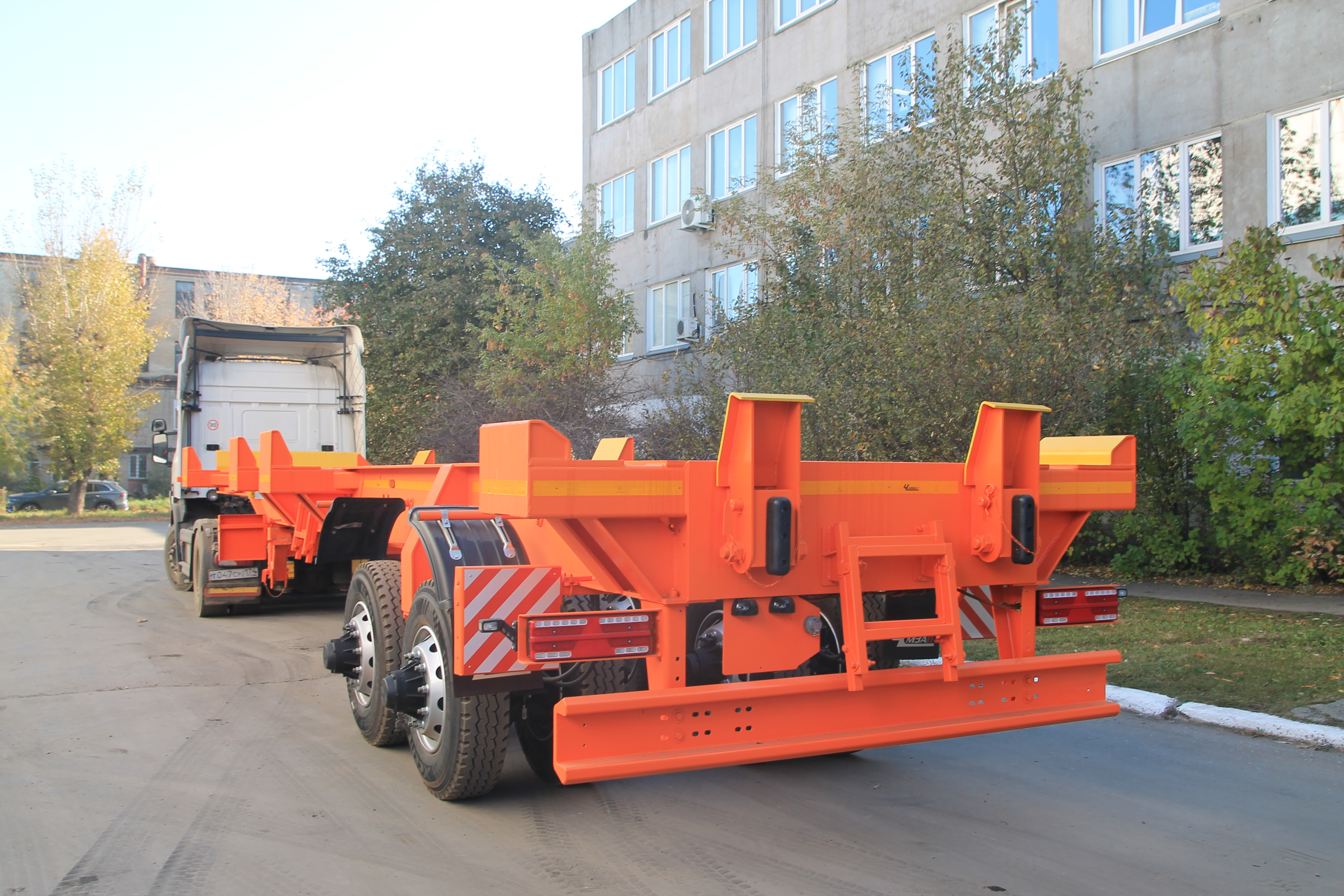 Представленный на конкурсе Скелетал-трейлер ЧМЗАП 602010-010-М4.512 - это уникальное решение для портовой логистики из отечественных узлов и материалов на балансирной, полностью локализованной подвеске собственного производства ЧМЗАП с усиленной рамой грузоподъёмностью 80 тонн в индивидуальной конфигурации под контейнеры Заказчика 20/40/45 футов с дополнительными ловителями.