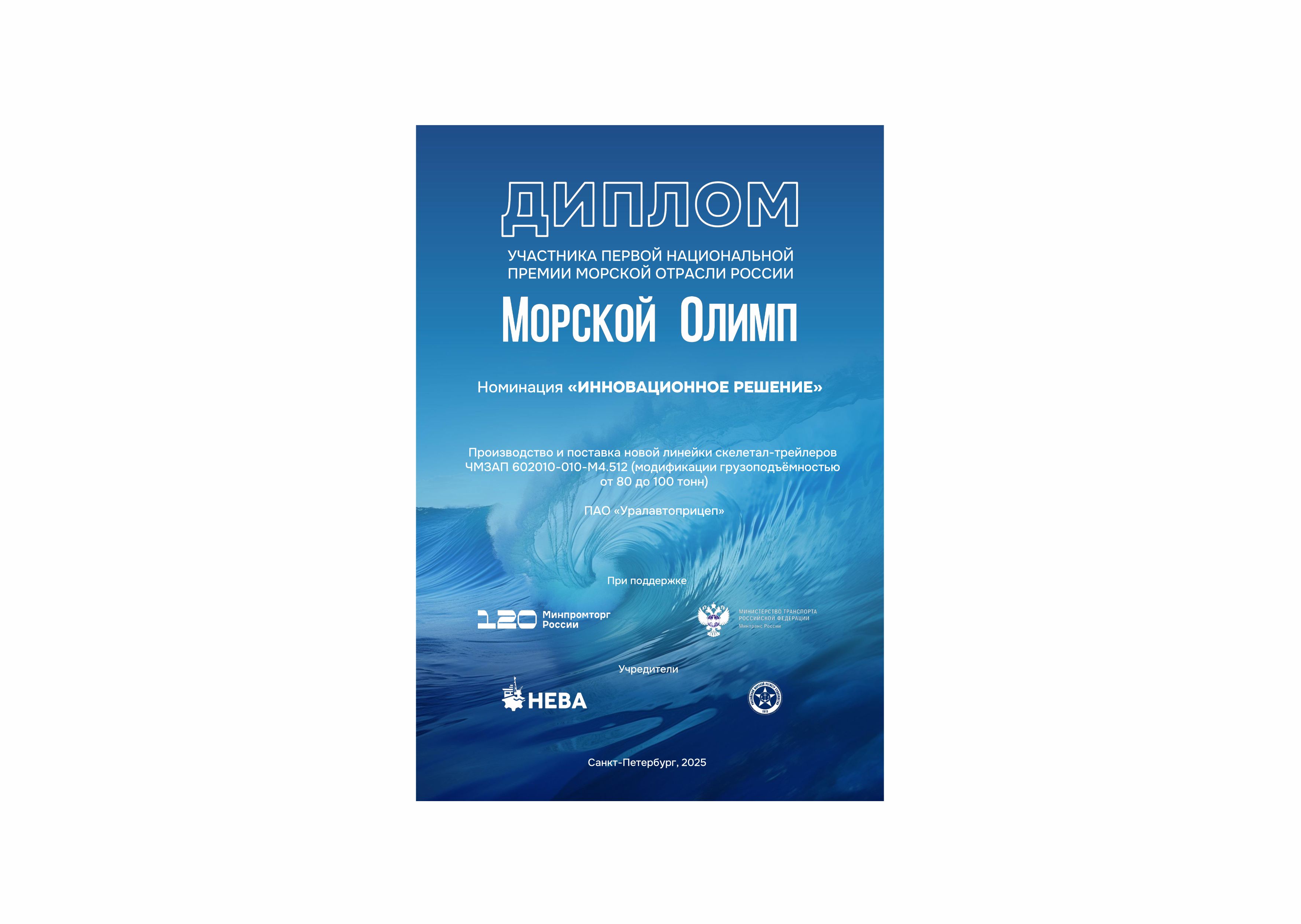 ПАО «Уралавтоприцеп» представил инновационный 80-тонный скелетал-трейлер на Первой национальной премии морской отрасли «Морской Олимп».