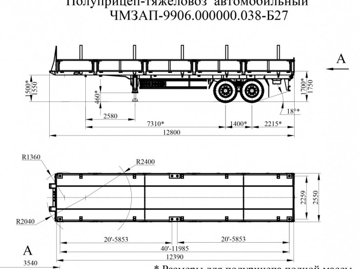 Полуприцеп-тяжеловоз ЧМЗАП 9906 по спецификации 038 Б27