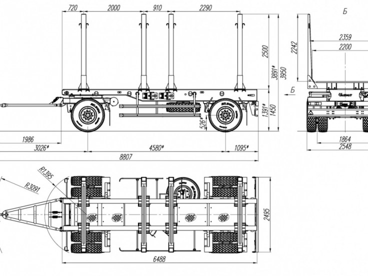 Данный прицеп представляет собой 1-секционную платформу-сортиментовоз со сварной рамой лонжеронного типа грузоподъемностью до 18 тонн. Применяется в основном при заготовке и перевозке леса с лесных заготовительных делянок на объекты дальнейшей переработки или использования.