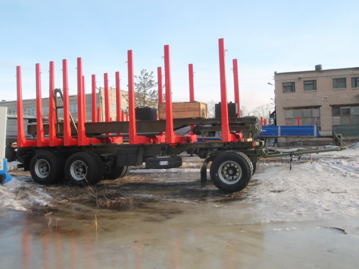 Данный лесовоз-сортиментовоз имеет грузоподъемность до 18 тонн, двускатную ошиновку и съемные коники по краям платформы. Для безопасности во время эксплуатации прицеп оснащен высоконадежной системой торможения с ABS от компании WABCO. Мягкость хода обеспечивает рессорная подвеска.