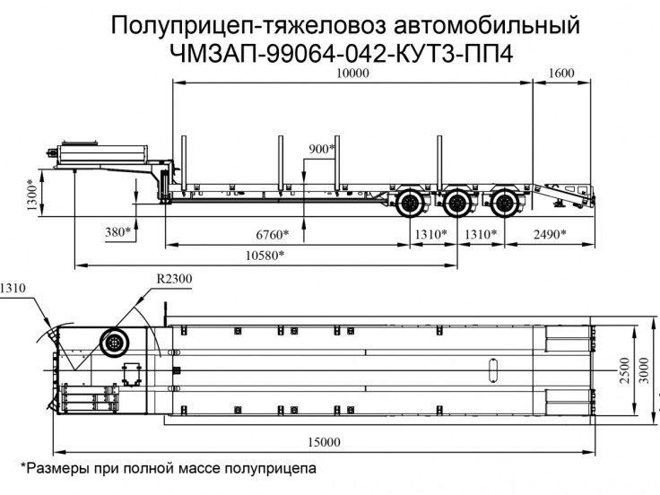 Низкорамный полуприцеп-тяжеловоз ЧМЗАП 99064 по спецификации 042-02-КУТ-ПП4