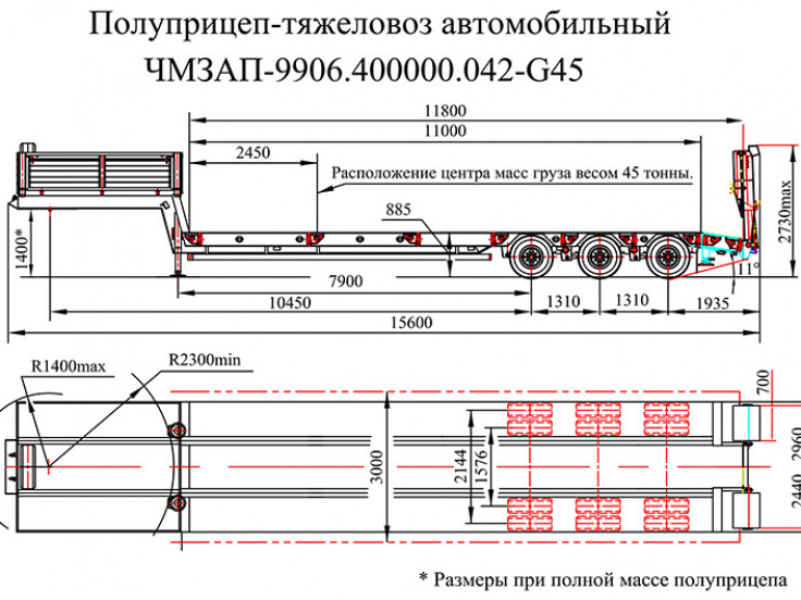 Низкорамный полуприцеп ЧМЗАП 99064 по спецификации 042 G45