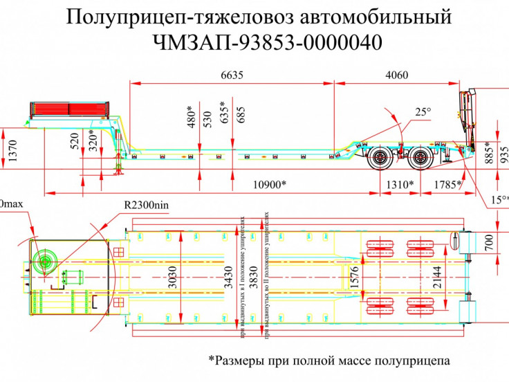 Низкорамный полуприцеп-тяжеловоз ЧМЗАП 938530 по спецификации 040