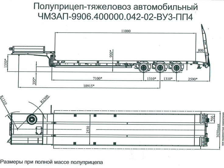 Низкорамный полуприцеп-тяжеловоз ЧМЗАП 99064 по спецификации 042-02 ВУ3 ПП4 (100-02)