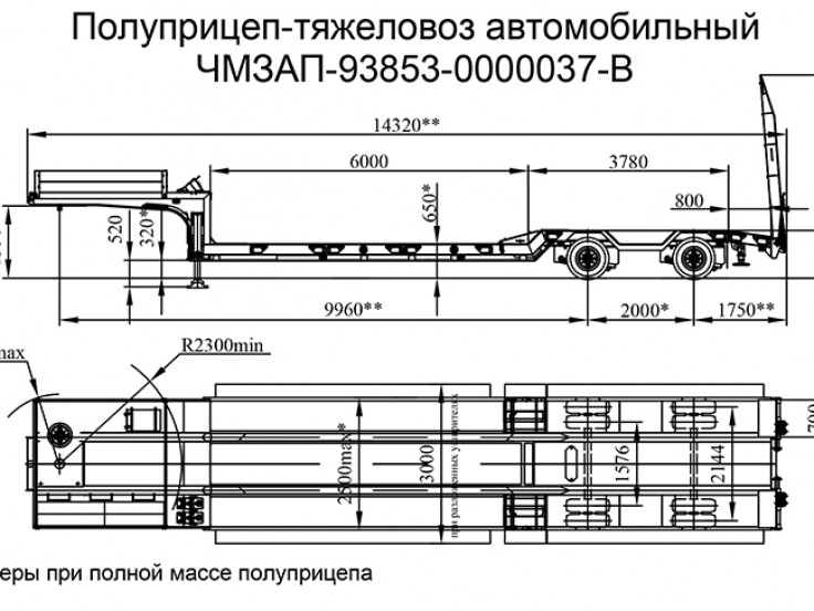Низкорамный полуприцеп-тяжеловоз ЧМЗАП 93853 по спецификации 037 В