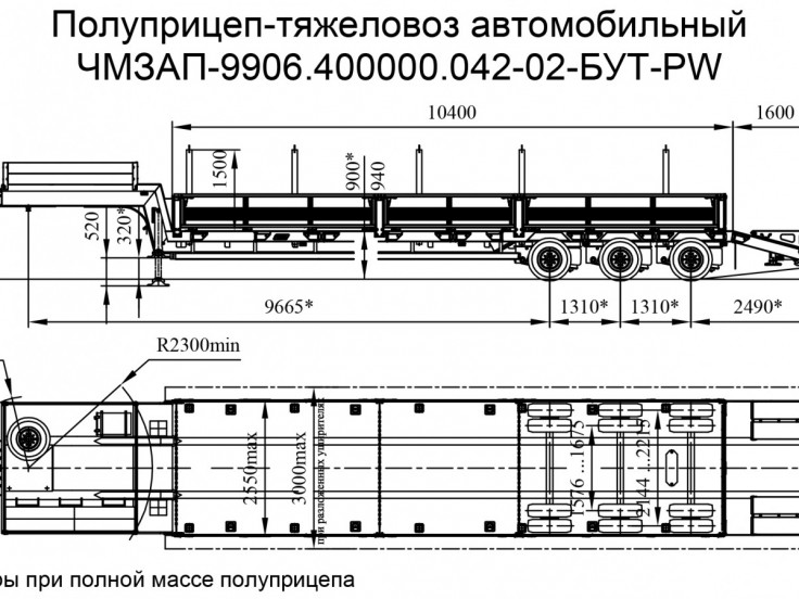 Низкорамный полуприцеп-тяжеловоз ЧМЗАП 99903 по спецификации 015