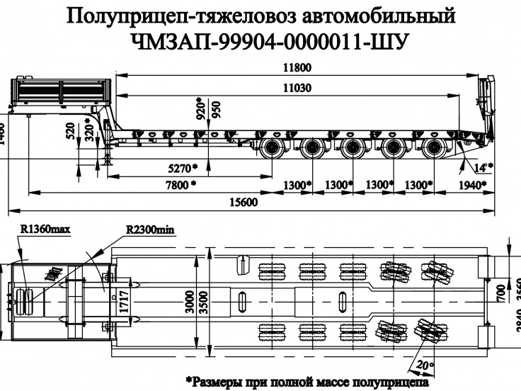 Низкорамный полуприцеп-тяжеловоз ЧМЗАП 99903 по спецификации 033