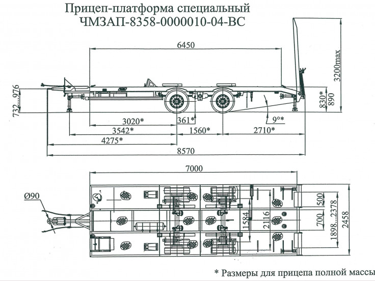 Прицеп-платформа ЧМЗАП 8358 по спецификации 010-04 ВС