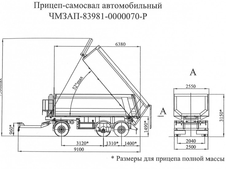 Полуприцеп-самосвал ЧМЗАП 9520 по спецификации 030-02