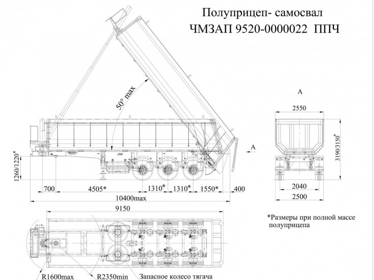 Полуприцеп-самосвал ЧМЗАП 9520 по спецификации 022