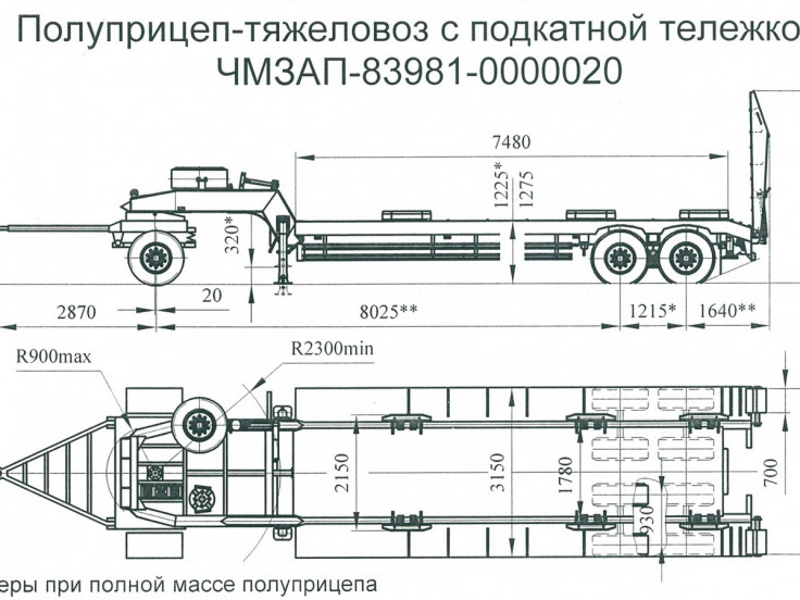 Полуприцеп-тяжеловоз с подкатной тележкой ЧМЗАП 83981 по спецификации 020
