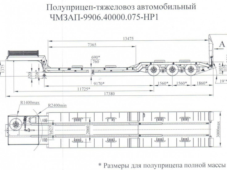 Полуприцеп-тяжеловоз автомобильный ЧМЗАП 99064 по спецификации 081 ККТ11