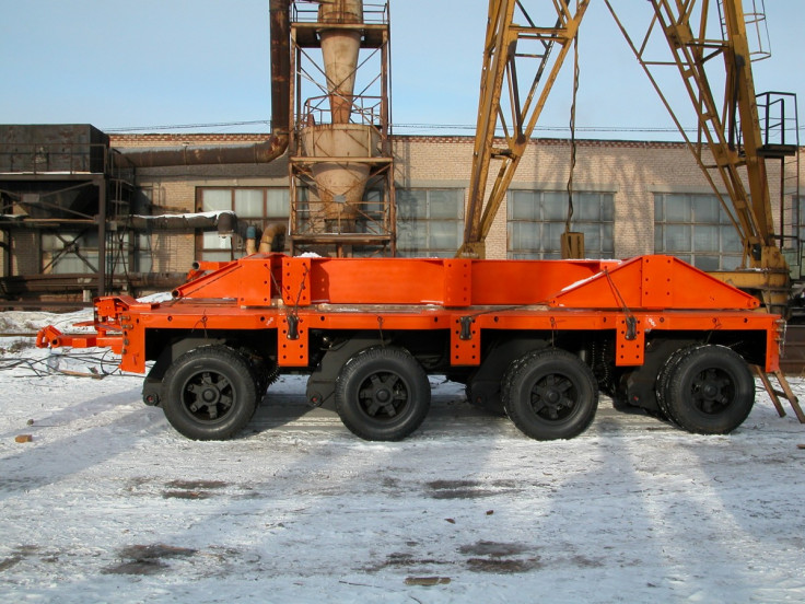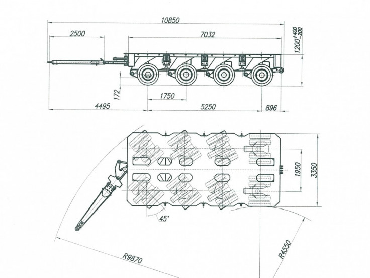 Естественно, конструкция адаптирована под повышенную нагрузку. Здесь используется рычажная гидробалансирная подвеска. Суммарно установлено 4 оси со спаренными колесами. Масса самого полуприцепа составляет 18 тонн (с учетом колес, базовых навесных модулей, по типу ящика для инструментов). Максимальная скорость передвижения модуля составляет 25 километров в час.