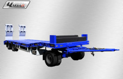 К держателям крепится одно запасное колесо. Развивает трал низкорамный 20 тонн предельную скорость порядка 70 километров в час. Оснащается полноценными механическими трапами, благодаря ширине порядка 700 миллиметров обеспечивается предельно безопасный и надежный заезд. Трал и тягач соединяются прочным и надежным заменяемым шкворнем. Благодаря задним упорам обеспечивается полноценная защита конструкции от деформации во время движения.