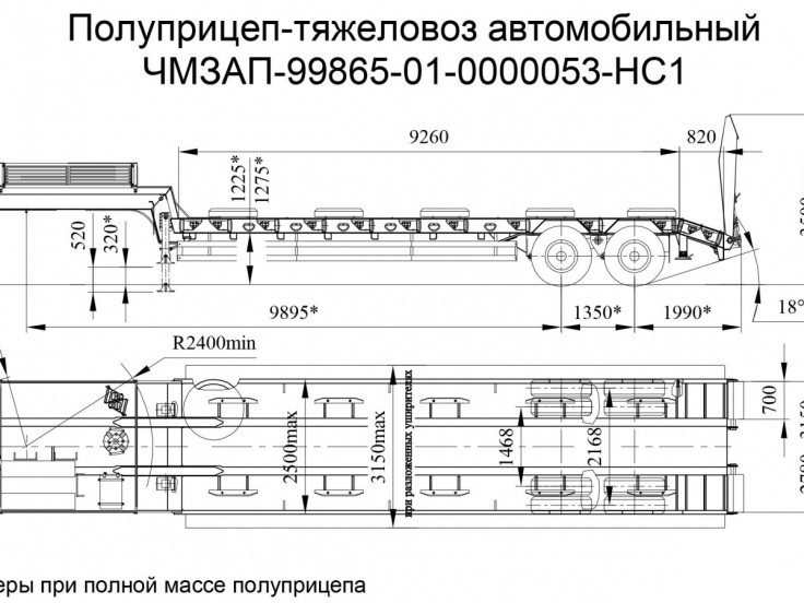 Высокорамный полуприцеп ЧМЗАП 99865 по спецификации 01-053 НС1 – технические характеристики