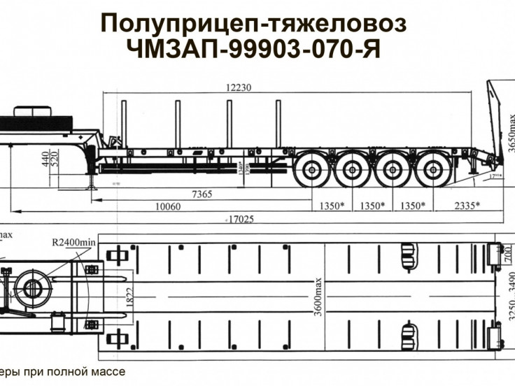 Полуприцеп-тяжеловоз ЧМЗАП 99903 по спецификации 070 – характеристики
