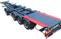 - Полуприцеп контейнеровоз раздвижной. Такой полуприцеп с контейнерными замками может применяться для перевозки нескольких грузовых емкостей, но иногда с его помощью транспортируют нестандартный груз;